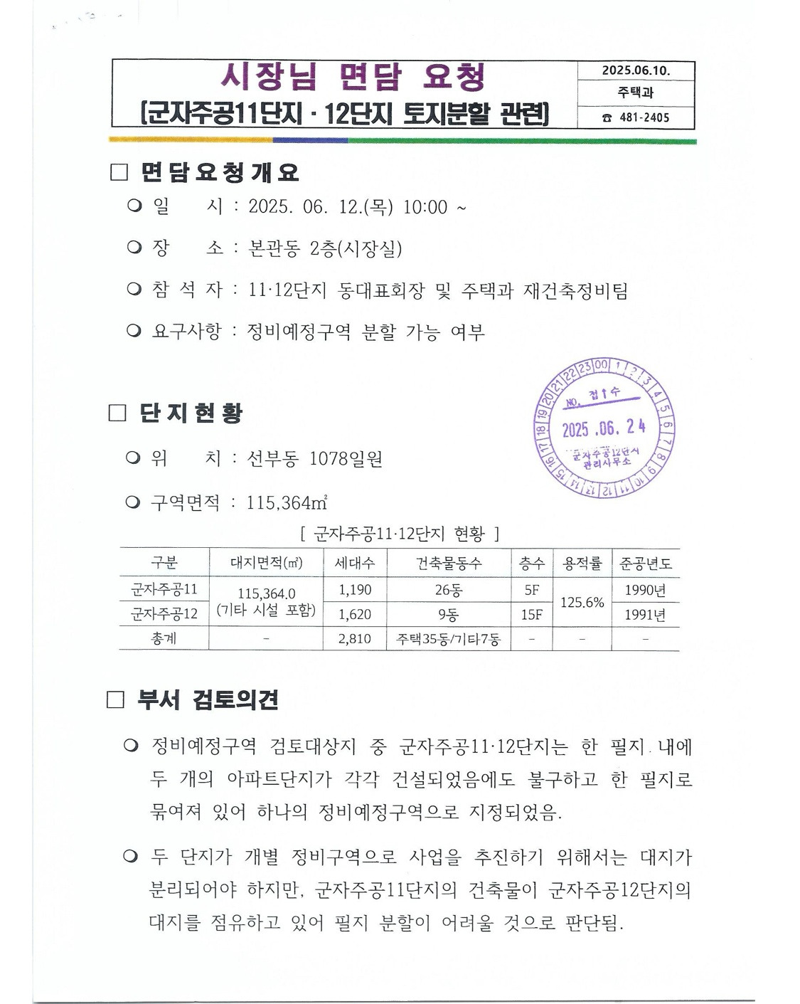 군자주공11~12단지 정비구역 분할 가능 여부 작성자운영자|작성시간25.10.02|조회수54 목록 댓글 0 글자크기 작게가 글자크기 크게가 다음검색 현재 게시글 추가 기능 열기 북마크 공유하기 신고 센터로 신고 댓글 댓글 0 댓글쓰기 답글쓰기 댓글 리스트