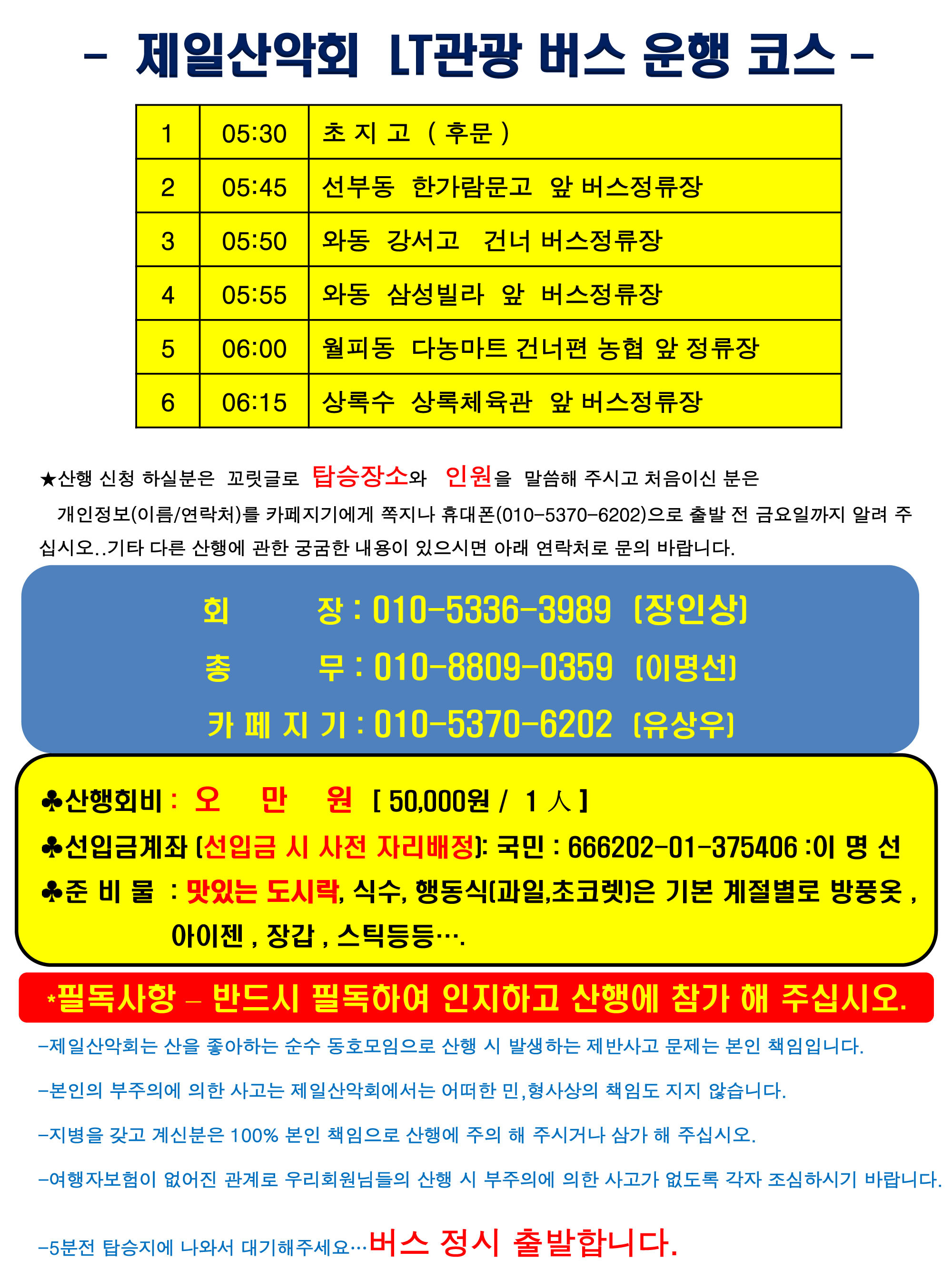 ☞선입금 환불규정 : 산행주 금요일 24시 이전에 취소 - 전액환불&이월