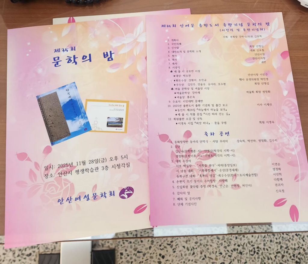 2025년 11월 28일 문학의 밤 작성자신옥철|작성시간25.11.29|조회수100 목록 댓글 1 글자크기 작게가 글자크기 크게가 다음검색 현재 게시글 추가 기능 열기 북마크 신고 센터로 신고 댓글 댓글 1 댓글쓰기 댓글 리스트 작성자안명심 | 작성시간 25.11.29 이렇게 역사의 한페이지가스토리가 되었네요~ 댓글 전체보기