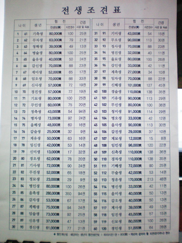 육십갑자(六十甲子)에 따른 각각의 흠전(欠錢) 및 간경(看經)해야 할 경전(금강경) 권수를 기록하고 있어,