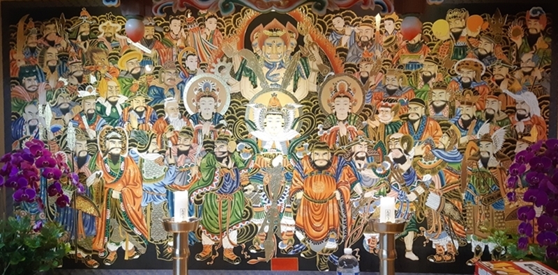 신중탱화는 불교의 호법선신을 묘사한 불화로 대개 법당의 중심부에서 왼쪽과 오른쪽 벽에 봉안된다.