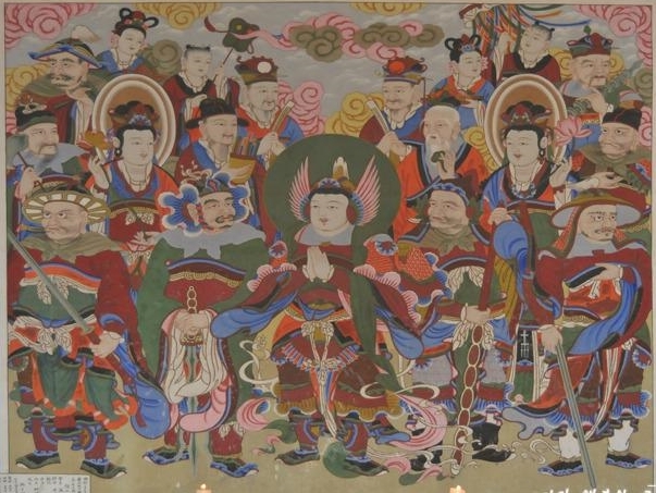 불교의 호법신을 나타낸 불화로 신중님들은 부처님의 제자가 아니고 부처님께 불법을 수호하겠다는 약속을 하고 불자와 절의 경내를 수호하는 호법신들이다.