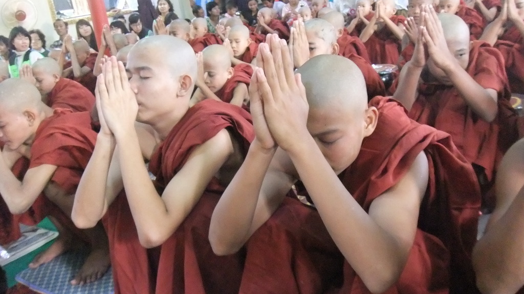 스님이 되기 위한 의식을 치루는 데, 이것이 바로 신쀼(Hsinpyu) 의식이라 합니다. 출가하여 사원에서 10선업과 자비, 연민을 익힙니다. 4성제를 공부합니다.