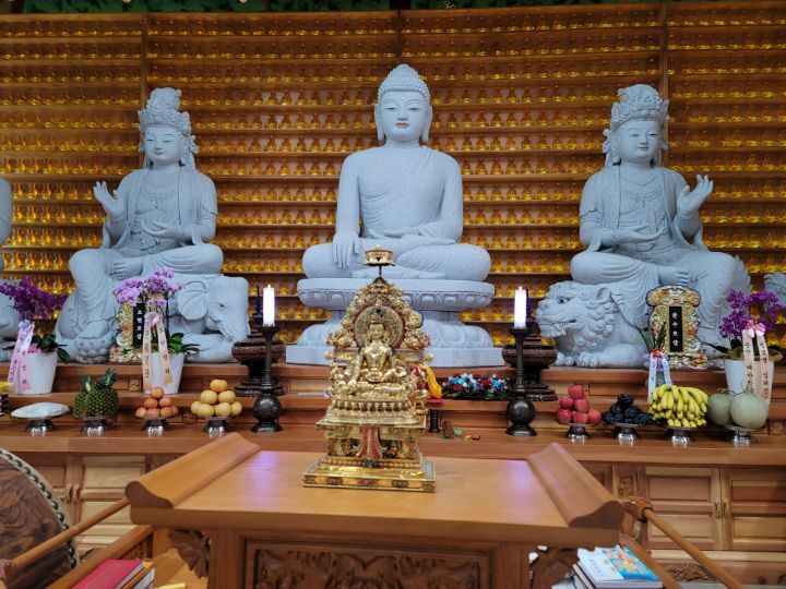 기원 하오니 일체의 자아의식과 갖은 번뇌의 뿌리를 초월하게 하시고, 일체 죄업을 분쇄하여 원만성취 해주소서.