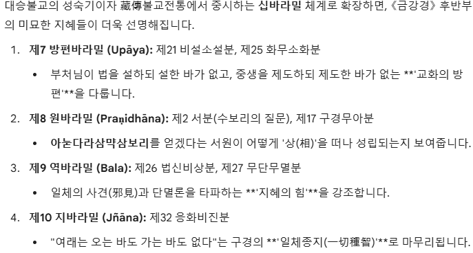 대승불교의 성숙기이자 藏傳불교전통에서 중시하는 십바라밀 체계로 확장하면, 《금강경》 후반부의 미묘한 지혜들이 더욱 선명해집니다.