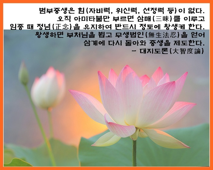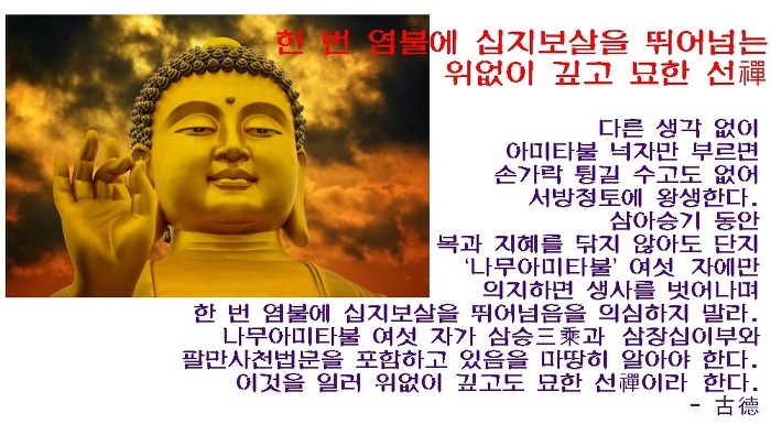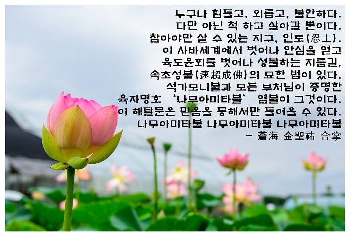 사실 이미 수년전 정토삼부경을 접하였고, 우리스님의 정토백강도 진즉에 들었으나, 다만 귀로는 들으나 마음에는 깊히 들어오지 않던 것이, 한순간 기뻐 환희하며 진실로 믿고 극락왕생을 발원하게 되었습니다()