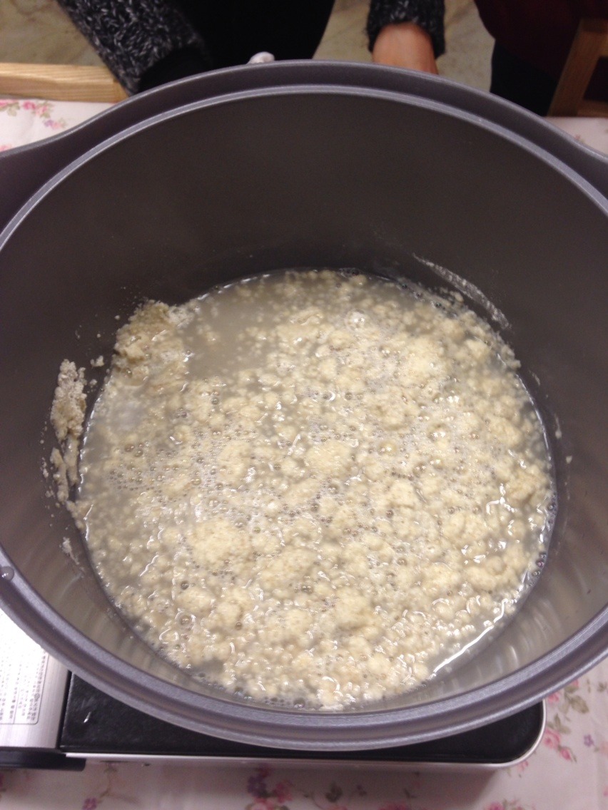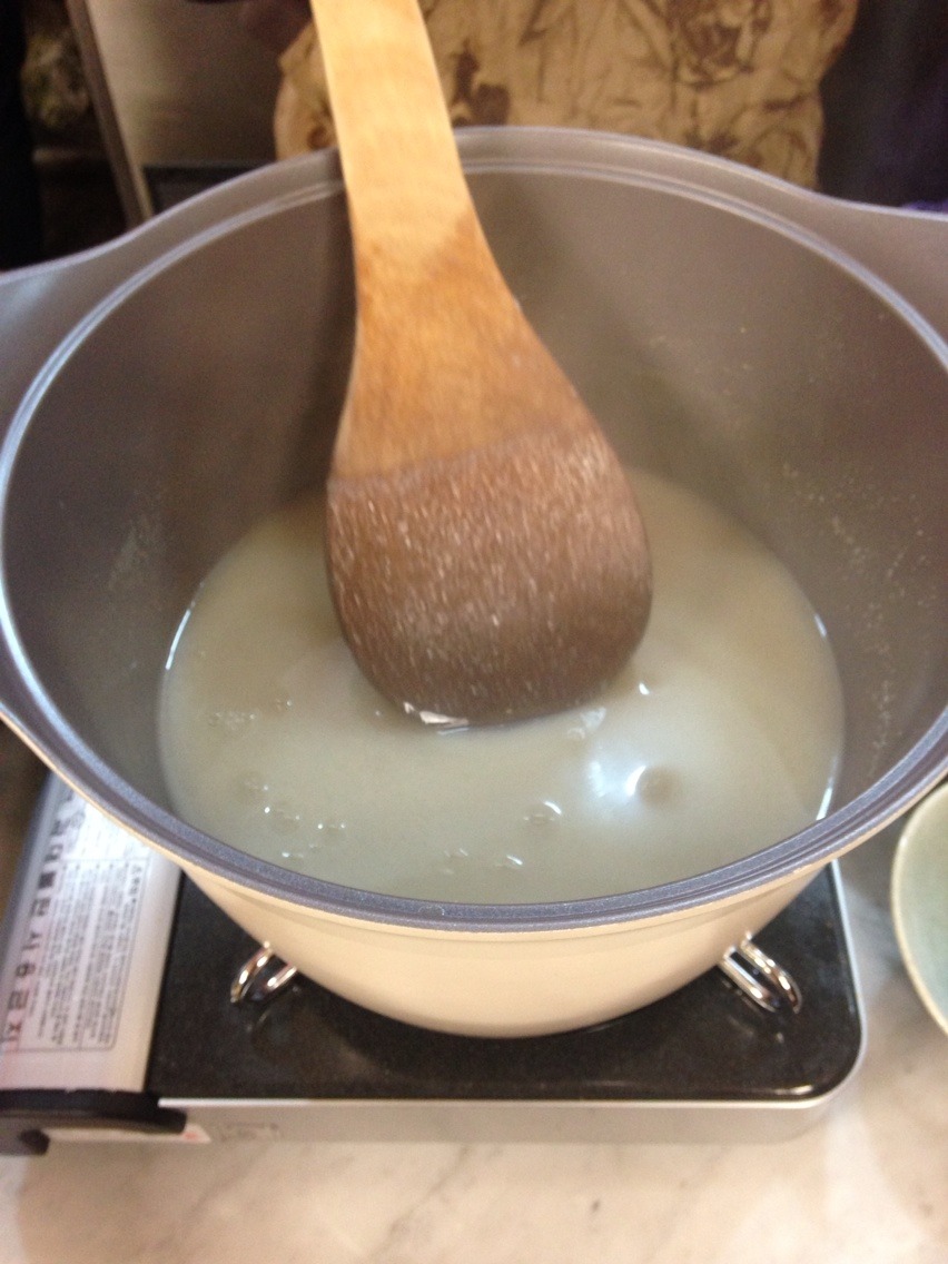 4. 3의 재료를 불에 올려 끓여 죽은 쑨다.