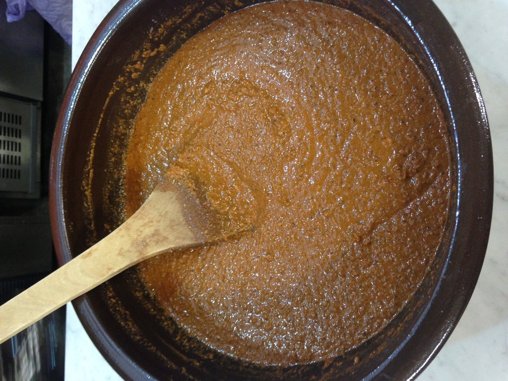 6. 항아리에 버무린 막장을 넣고 웃소금을 뿌려두고 숙성시킨다.