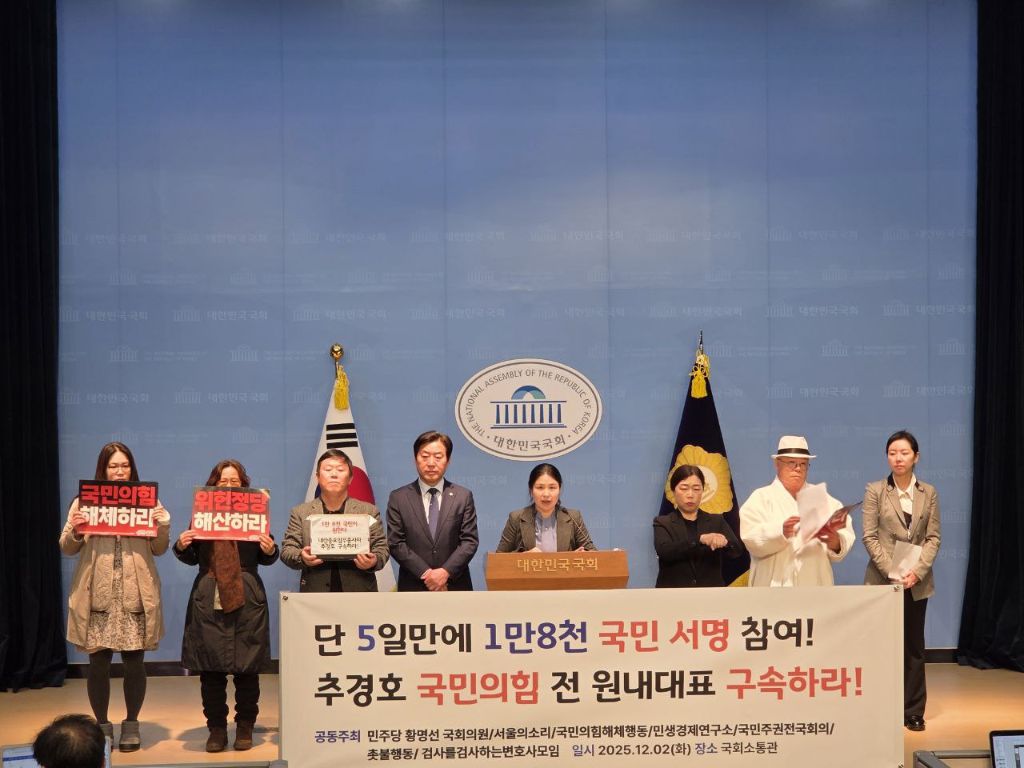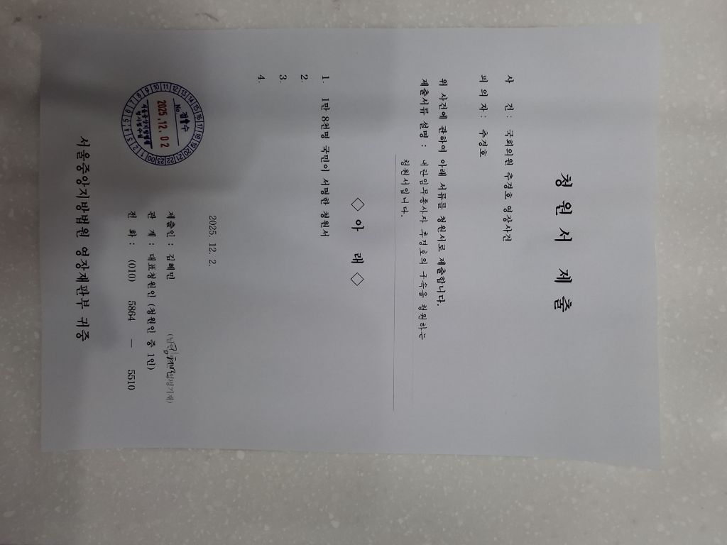 12월 2일 23시 54분 추경호 구속하라 법원 앞 농성중 작성자국힘해체김혜민|작성시간25.12.02|조회수18 목록 댓글 0 글자크기 작게가 글자크기 크게가 오늘까지 1만 8천여명의 국민들께서 추경호 구속 청원을 참여해주셨고 오늘 국회 기자회견, 법원 앞 기자회견 후 법원에 제출하고 지금까지 농성중입니다! 추경호를 구속하라! 다음검색 현재 게시글 추가 기능 열기 북마크 공유하기 신고 센터로 신고 댓글 댓글 0 댓글쓰기 답글쓰기 댓글 리스트