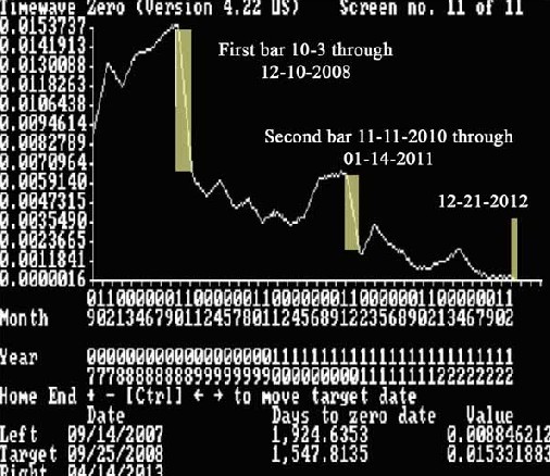 이 프로그램에 의하면 그래프가 상승시엔 새로운 나라가 탄생하거나 영웅이 등장하고 하락 할 때엔 질병과 재앙 역사적 비극이 일어나더라는 것이다. 이러한 주역이 기원전 1600년경부터 시작해 2012년 12월 21일에 끝이 나는데 이는 마야의 달력이 끝나는 시기와 같다고 말한다. 고로 종말이 온다는 것이다.