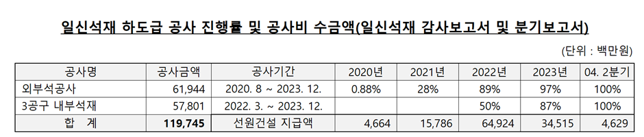 2. 일신석재의 공사 진행률과 하도급 공사비 지급
