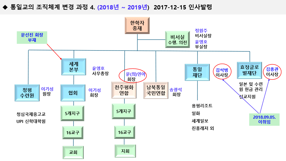 ▶ 참고로 2018년 천주평화연합(UPF)의 회장은 문(최)연아 선학학원 이사장으로 정치자금과 관련하여 무관하지 않을 것으로 경찰의 수사대상이 될 수밖에 없다는 사실을 식구들도 알아야 할 것이다.