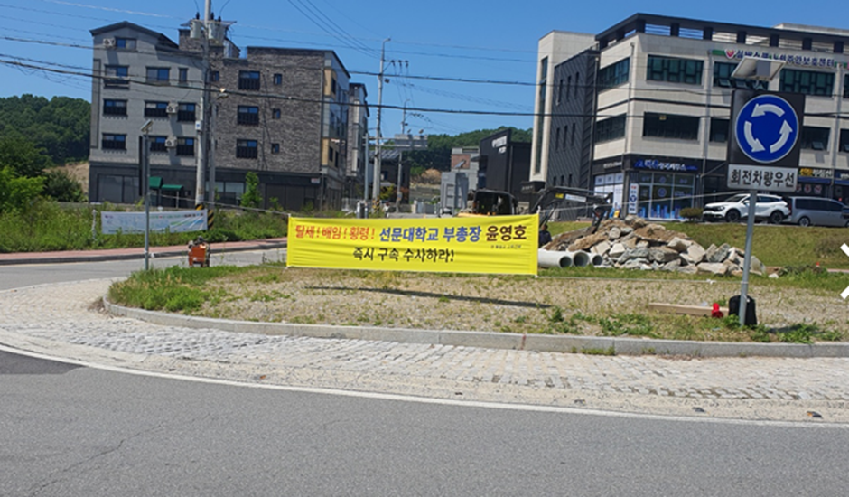 윤영호 선문대학교 부총장 취임에 맞추어 선문대학교 앞에서 1인 시위 단행 (2024-05-13)