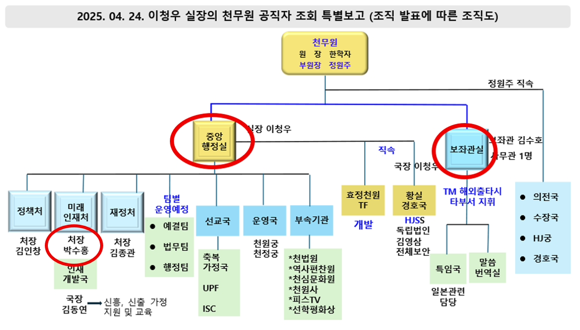 해임 이후에도 한학자 총재를 뒤에서 쥐고 흔드는 정원주 2. – 정원주 친정체제 구축과 ‘인사발령’ (2025-08-17)