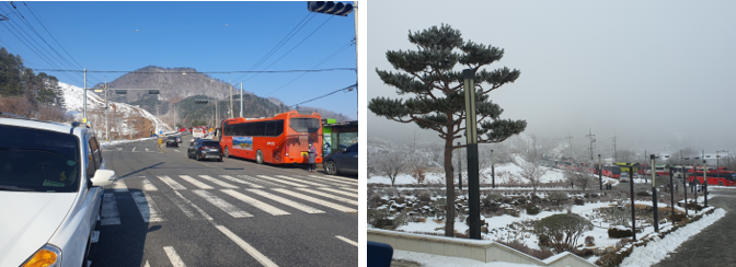 2025.02.02にワールドセンターで開催された「天苑宮勝利入宮世界連合礼拝および天一国賛美フェスティバル」行事に参加するため、全国の教会から貸し切りバスに乗って多くの食口たちが参加し、ワールドセンターの駐車場に駐車できない車両が、清平修練院からシルバータウンまでの路上に駐車するほどであった。