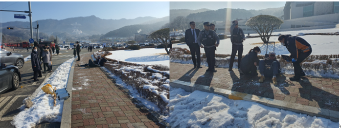 2025.02.02.天務院のイ某副局長は、独生女・真のお母様がワールドセンターでの行事を終えて、ワールドセンターから天正宮に戻る時間に合わせて、パク・ジニョン弁護士が1人デモを行おうとしたのを暴力で制圧した。