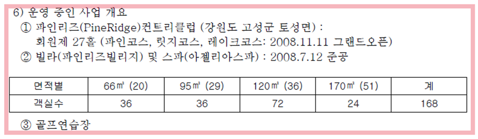 パインリッジリゾート売却の主管業務はサムイルPwCが受け持っており、「売上額は2022年の34億円から昨年42億円に増加した。営業利益は12億円から18億円と成長傾向にある」と掲示された。