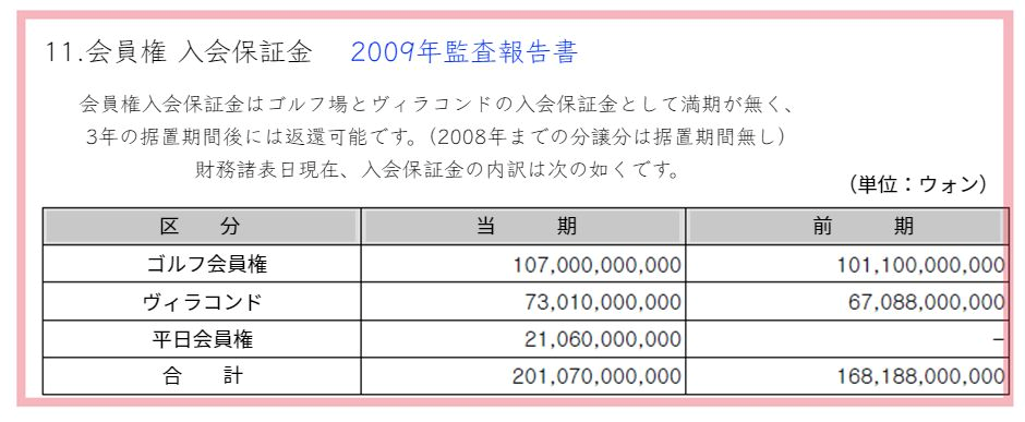 ゴルフ場に投入された金額は土地買入金額を含めて245億円で、工事金額だけで200億円以上が投入された。正常にゴルフ場工事が進行し、費用が使用されたとするならば、2009年までの会員権分譲金額201億円で充当し、50億円~100億円が残っただろう。