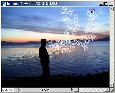 3. 같은 방법으로 [Shift]를 누르고 잇는 상태에서 이미지 창에서 다른 위치에 브러시를 클릭을 합니다. 역시 두번째 클릭한 지점과 직선으로 연결을 하여 브러시가 칠해집니다.