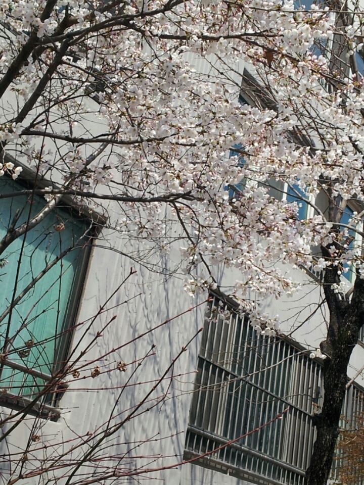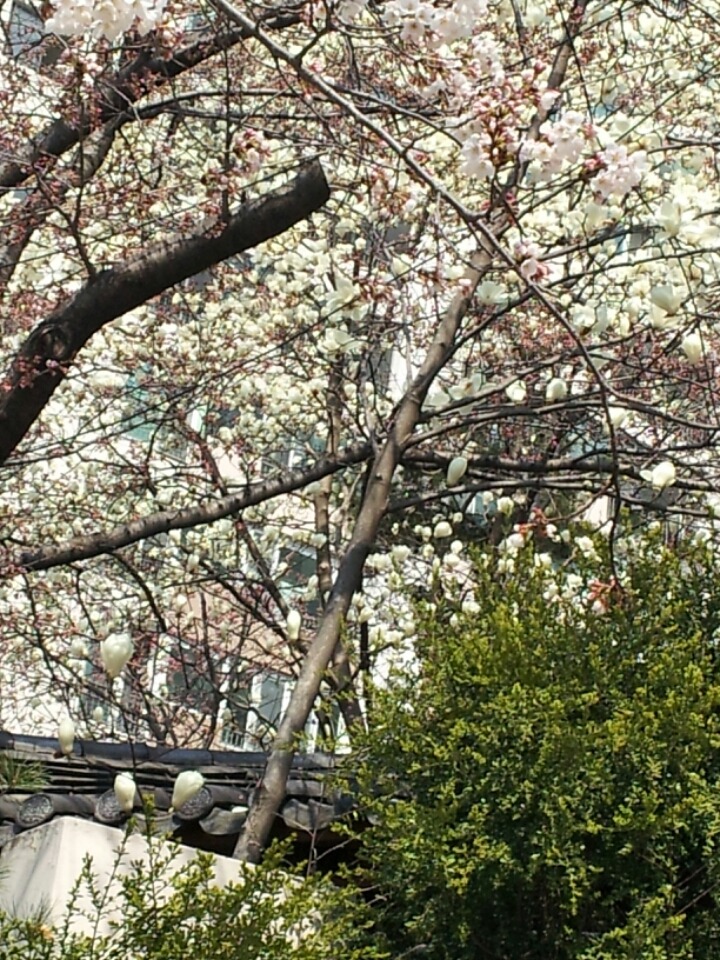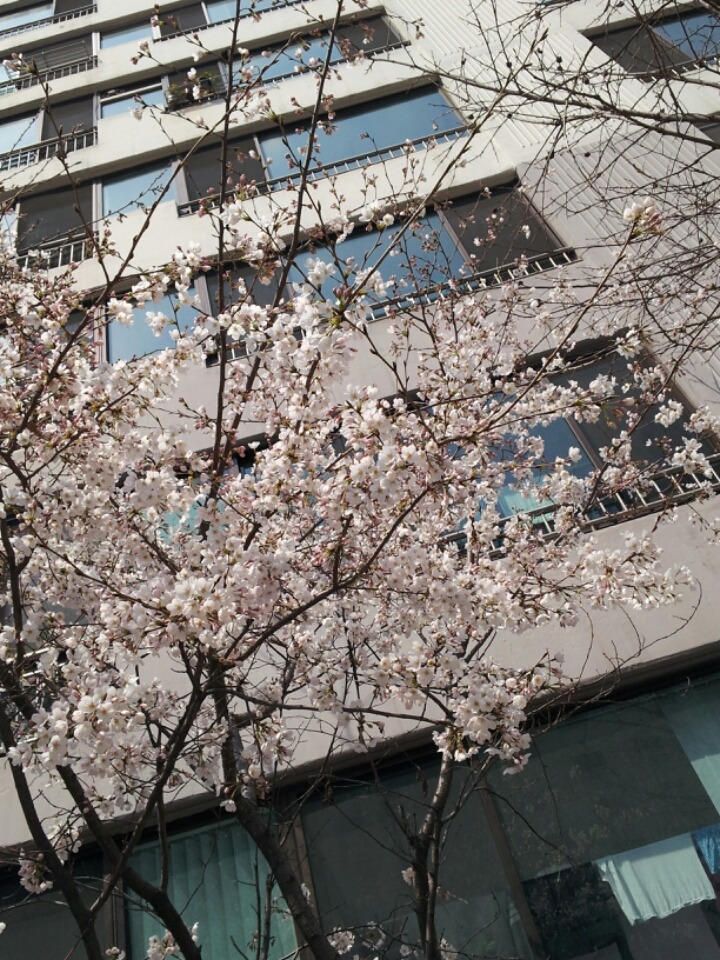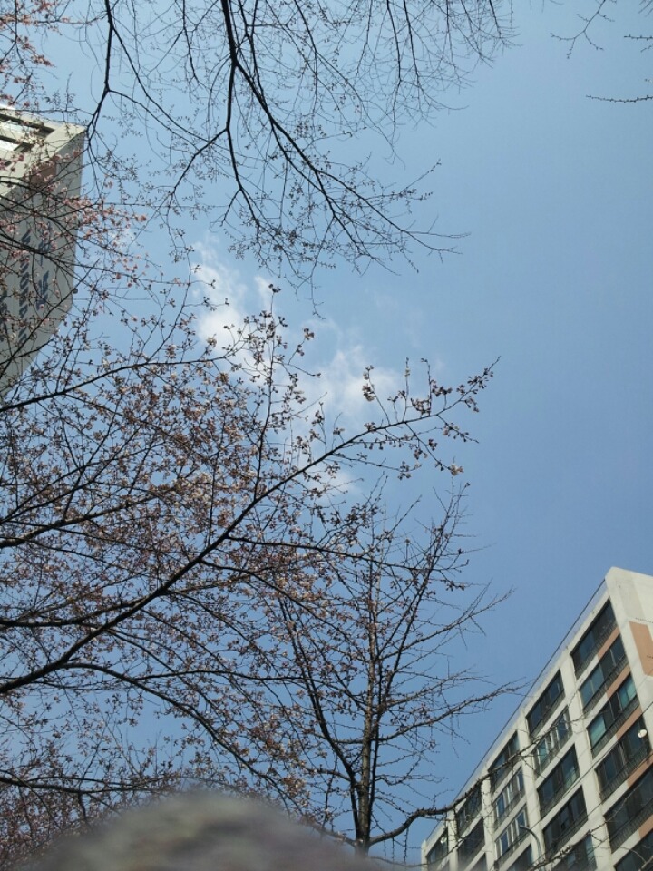 학산자락 솔숲 흙길 걷고서 집에 들어오는데 길 가에 벚꽃이 피어 있습니다