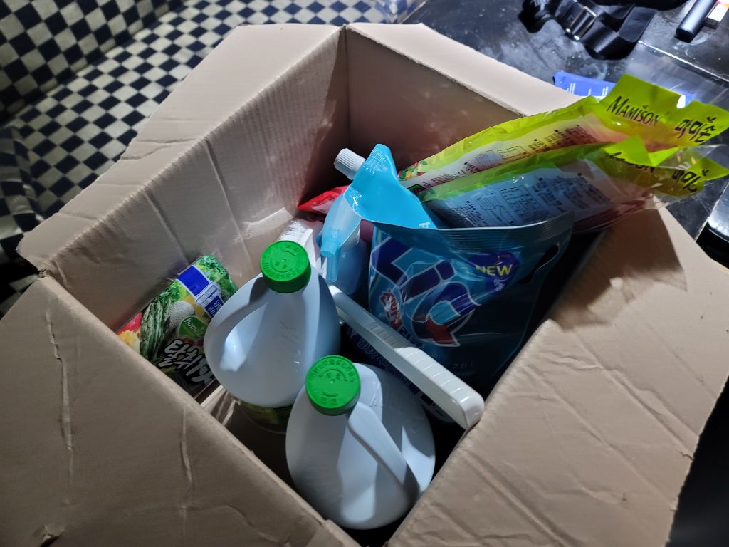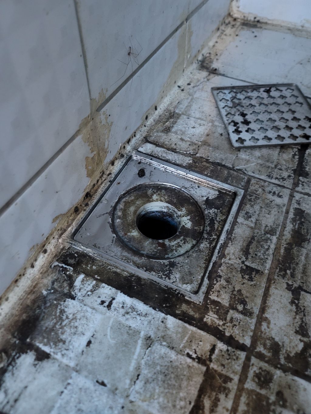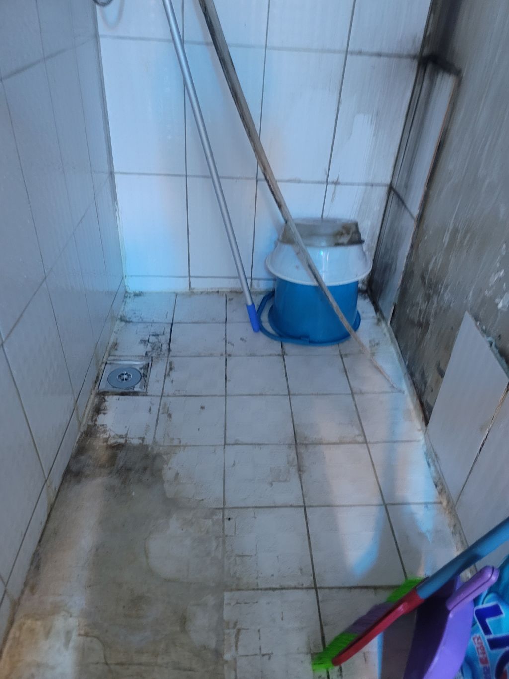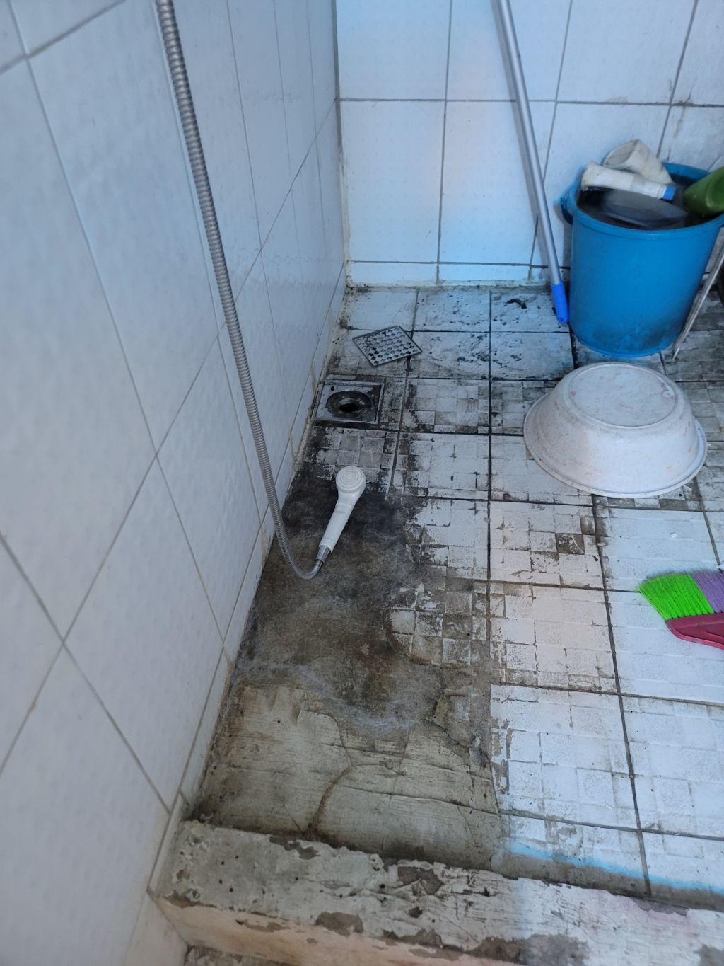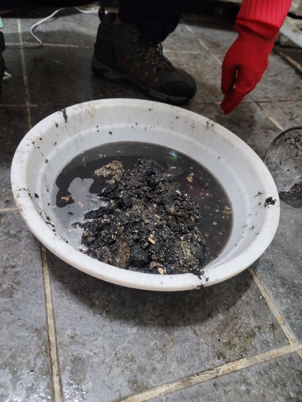 바닥에 오물 건더기가 잔뜩 쌓여있어서
