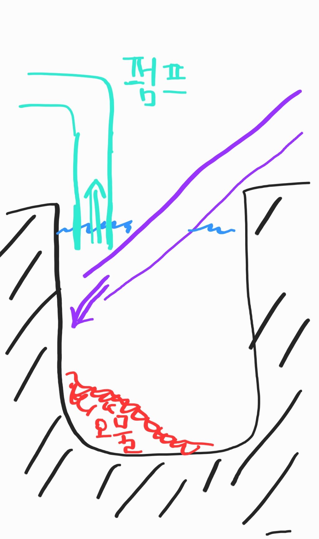 펌프로 중간 위치에서 물을 뽑아냅니다.