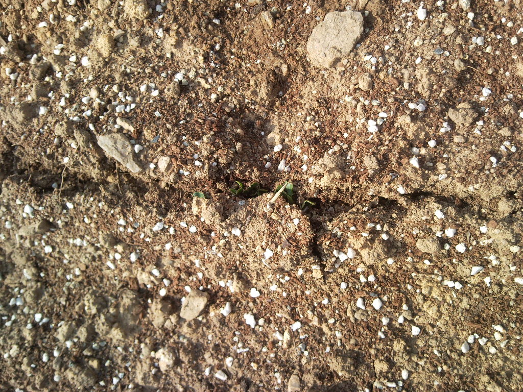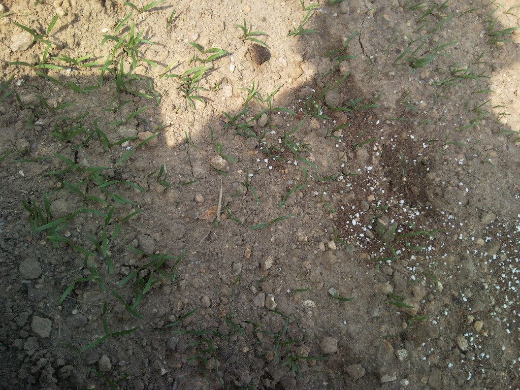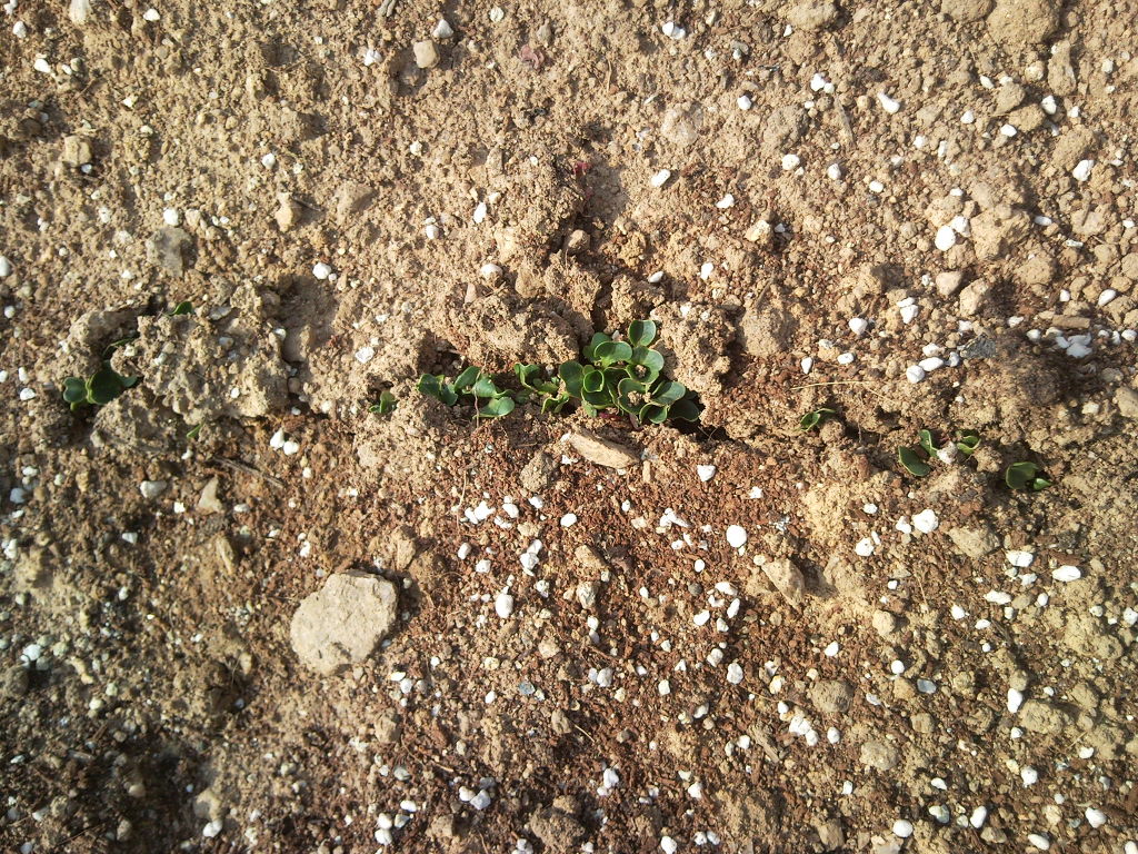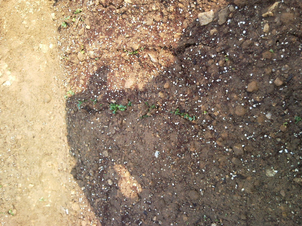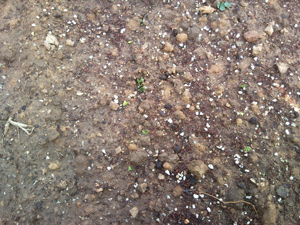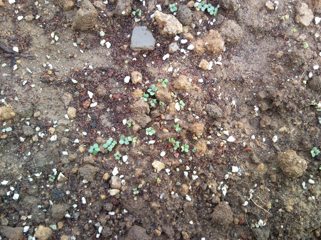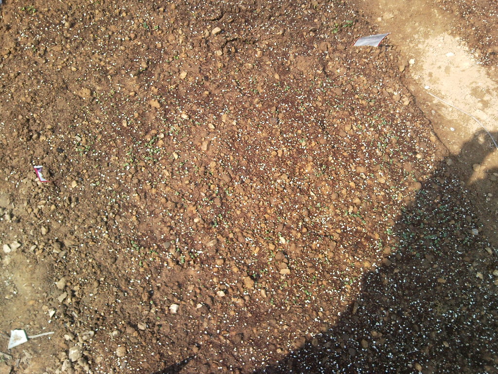 마치소금 밭같은데 하얀거는 비료구요 자세히 보면 새싹들이 많이 나왔습니다.