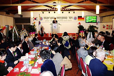 그 중에 독일에 정착한 광부들의 모임인 (사)재독 한인글뤽아우프(Gluck auf; 행운을 빈다는 뜻의 광부들의 인사말)회는 작년 12월 19일 에센市에 최정일 주독대사와 엘리넥(R. Jelink) 에센市 시장, 스토움 (M. Storm) 한국명예총영사, 고창원 재독한인글뤽아우프회 회장과 교민 3백여명이 참석한 가운데 파독 광부 기념회관 개관식을 가졌다.