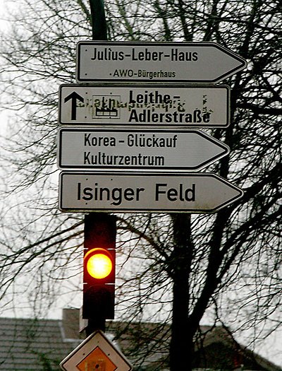 에센市 대로변 도로표지판에 새로 새겨진 재독 한인글뤽아우프 회관 겸 한국문화회관 안내문.