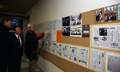 기념관 1층의 자료실. 당시 광부들의 생활을 보도했던 조선일보 등 신문 복사본과 사진들을 수집해서 전시를 하고 있다. 한편에는 최근 재독 한인글뤽아우프 회원들의 활동상도 사진으로 볼 수 있다.
