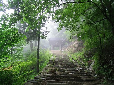 봉황문에서 바라본 일주문 숲길