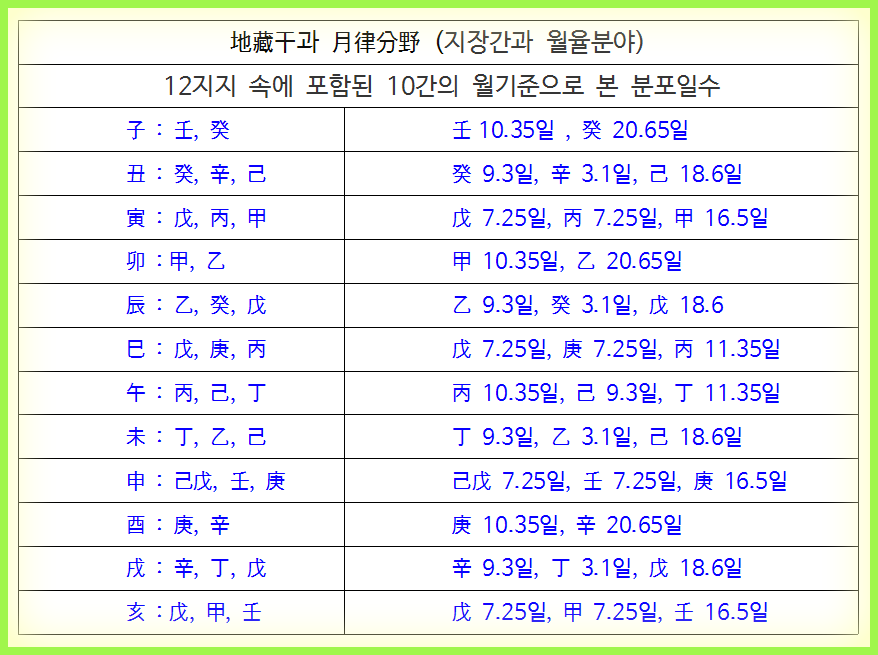地藏干과 月律分野 (지장간과 월율분야) | |