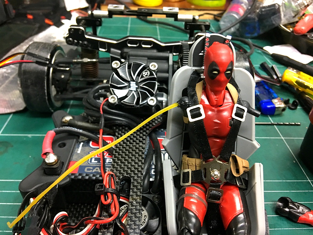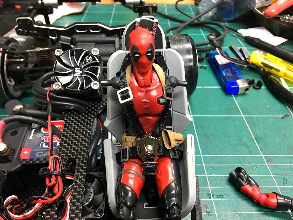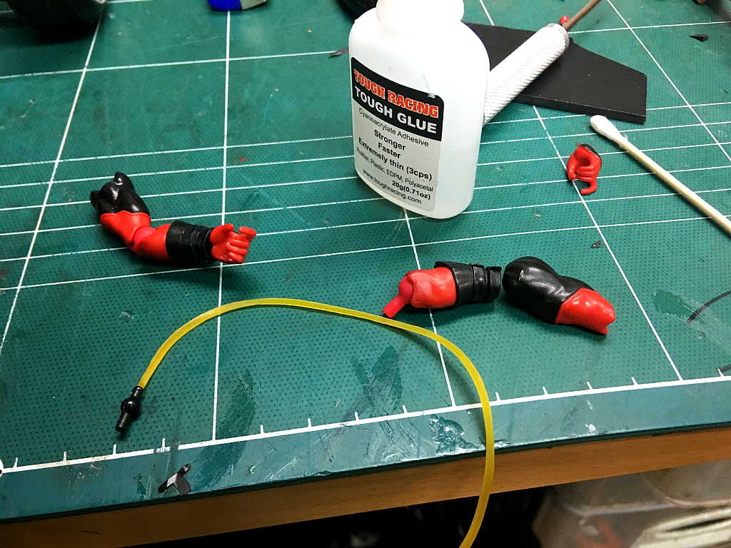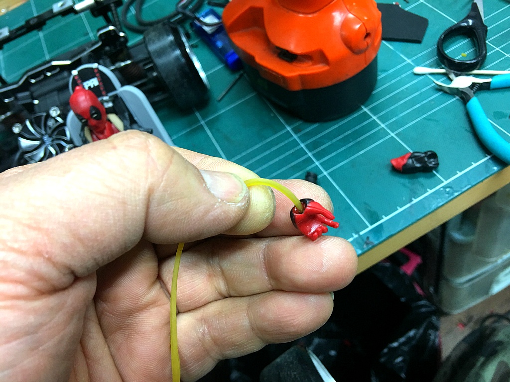데드풀 녀석 잠자고 있네요. 빨리 작업해야겠습니다. 고무줄을 이용해서 각 관절에 고정해 줍니다. 길이는 적당히 맞춰서 잘라붙이