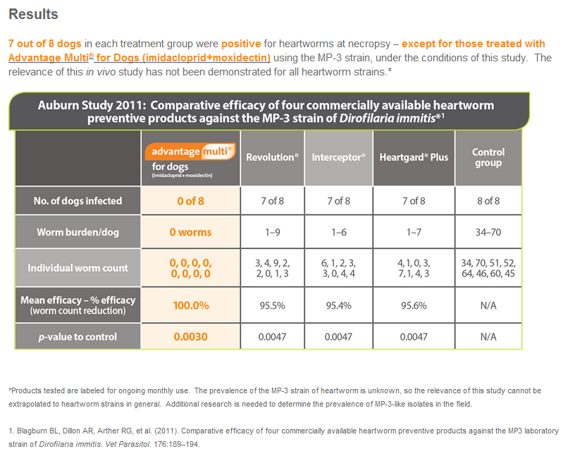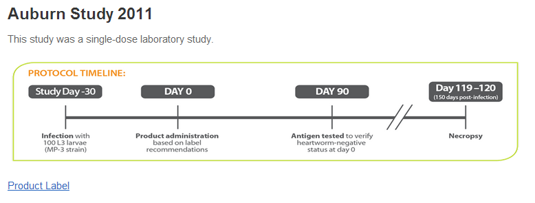 아래 Auburn Study 2011의 발표처럼 심장사상충예방약을 투여한다 하더라도 각 제형과 성분마다 예방율에 있어 차이를 보이는 이유도 이 때문입니다.