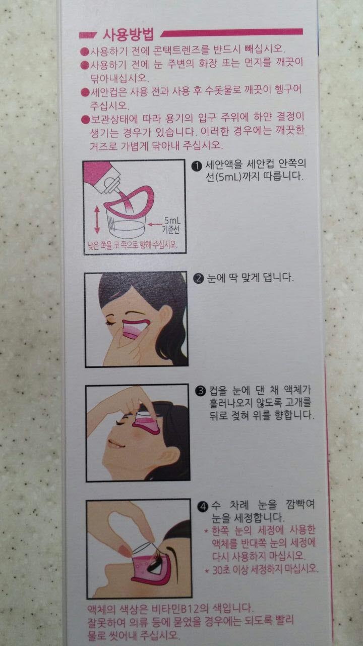 -사용 후에는 세안 컵을 충분히 세척하여 용기에 닫은 후 직사 광선을 피해 되도록 서늘한 곳에 보관해 주십시오.