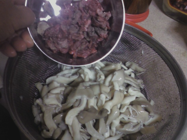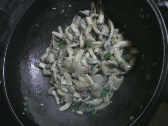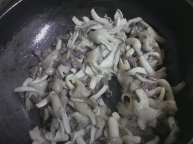 참기름하고 식용유를 두른다음고기랑 같이 볶아 준다