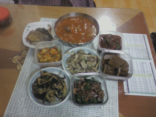 어제먹던 매운탕 무우 짱아찌 부추무침도 다먹어가고
