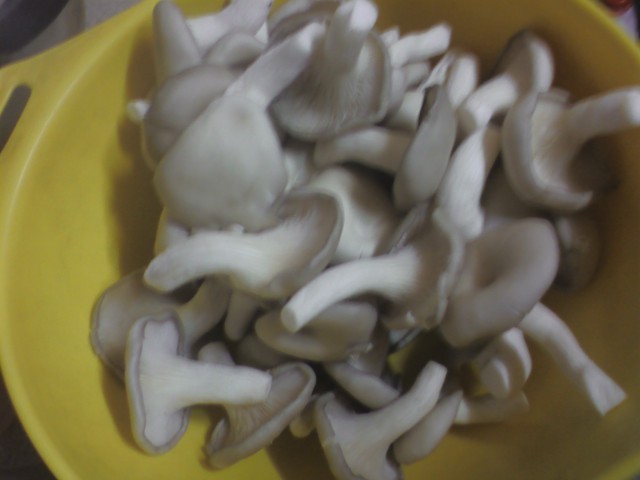 상추 한보따리 줬더니 느타리버섯 한보따리 가져왔다