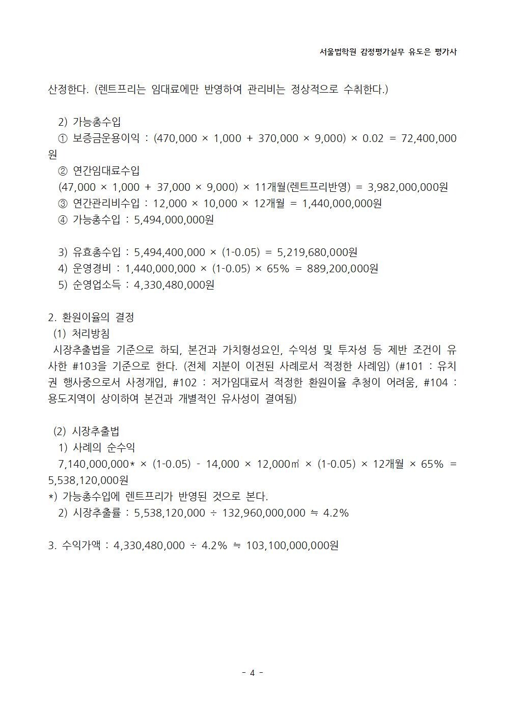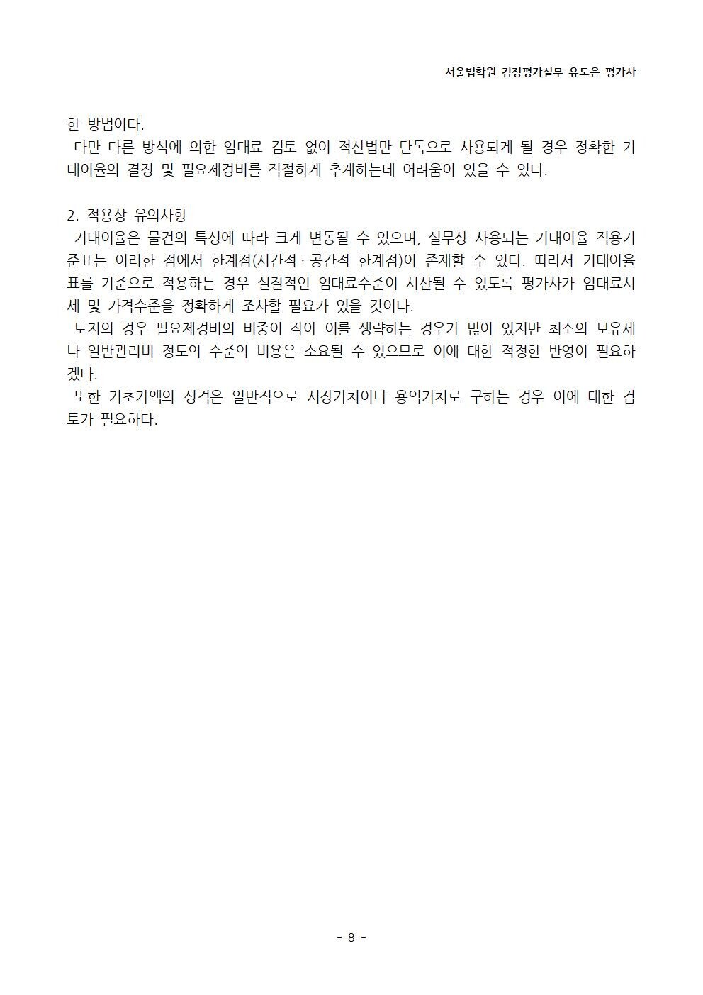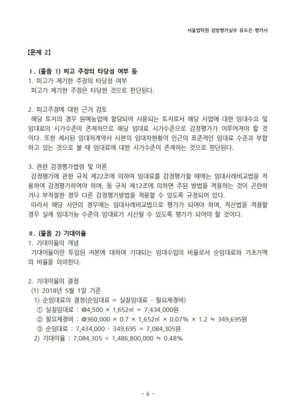 [예시답안] 제32회 감정평가실무 예시답안(유도은 평가사) 작성자서울법학원|작성시간21.08.09|조회수5,651 목록 댓글 0 글자크기 작게가 글자크기 크게가 32회 실무 예시답안.pdf154.37KB 첨부파일첨부된 파일이 13개 있습니다. jpg 파일 image002.jpg 다운로드 jpg 파일 image001.jpg 다운로드 jpg 파일 image003.jpg 다운로드 jpg 파일 image006.jpg 다운로드 jpg 파일 image004.jpg 다운로드 jpg 파일 image008.jpg 다운로드 jpg 파일 image005.jpg 다운로드 jpg 파일 image007.jpg 다운로드 jpg 파일 image009.jpg 다운로드 jpg 파일 image011.jpg 다운로드 jpg 파일 image010.jpg 다운로드 jpg 파일 image012.jpg 다운로드 pdf 파일 32회 실무 예시답안.pdf 다운로드 다음검색 현재 게시글 추가 기능 열기 북마크 공유하기 신고 센터로 신고 댓글 댓글 0 댓글쓰기 답글쓰기 댓글 리스트
