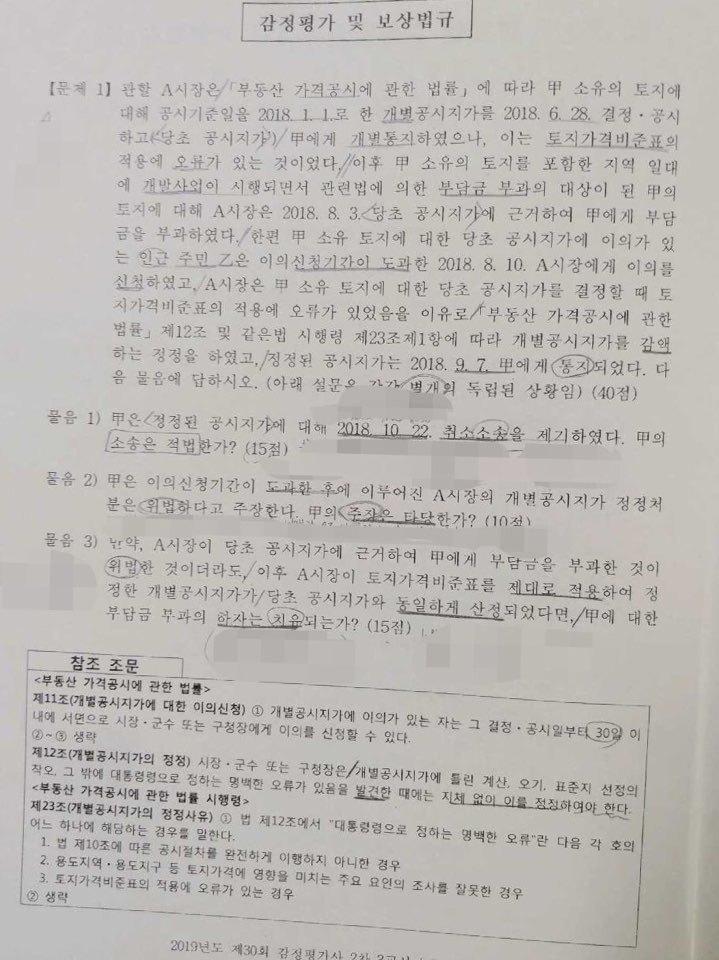 2019년 보상법규 기출문제에 대한 간단한 해설을 올려 드립니다.