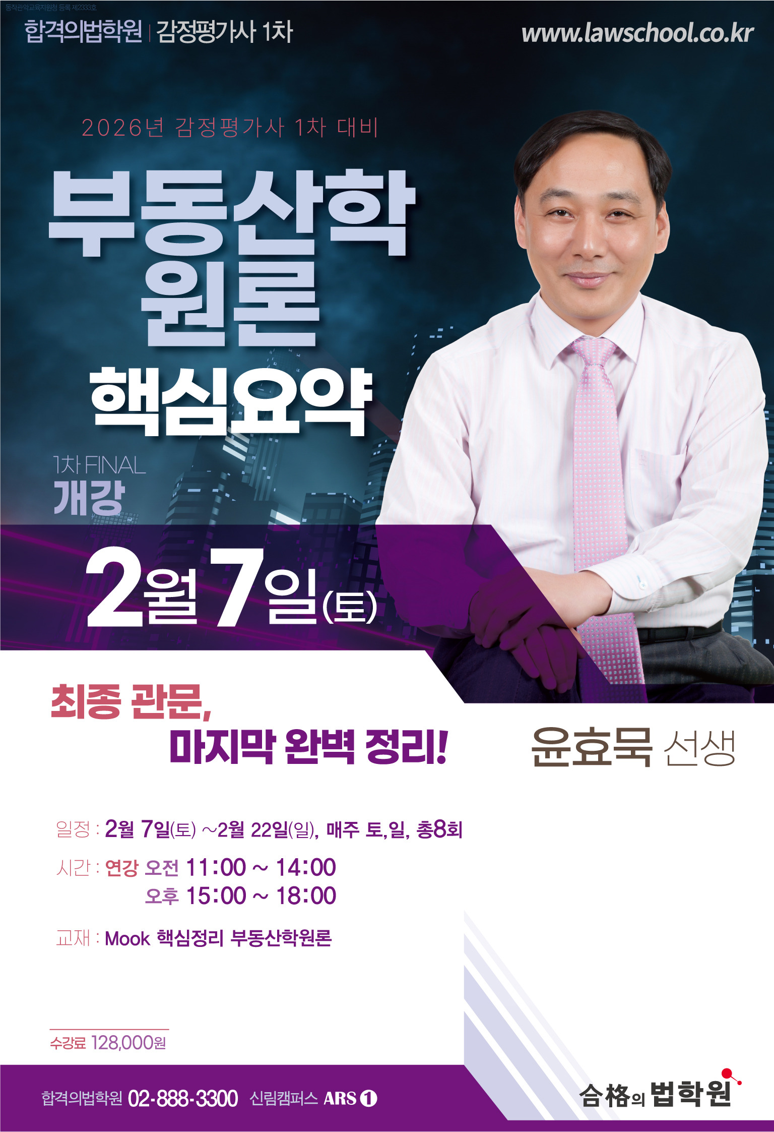 [합격의법학원] 윤효묵 부동산학원론 핵심요약 - 2/7(토) 개강! 작성자합격의법학원|작성시간26.01.30|조회수25 목록 댓글 0 글자크기 작게가 글자크기 크게가 다음검색 현재 게시글 추가 기능 열기 북마크 공유하기 신고 센터로 신고 댓글 댓글 0 댓글쓰기 답글쓰기 댓글 리스트