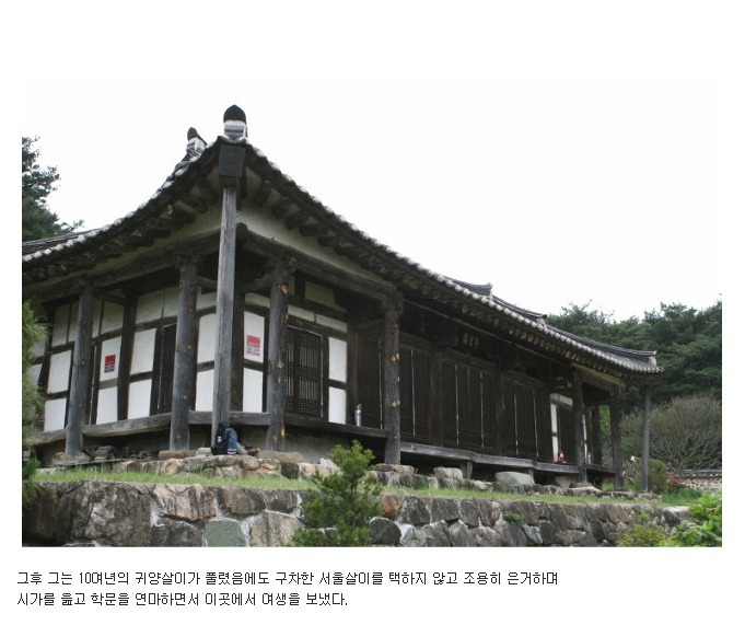 옛 선비들은 벼슬살이를 하고 나서 퇴관(退官)하면 자신이 나고 자랐으며, 조상들의 묘소가 있는 고향으로 돌아왔습니다. 우리가 잘아는 퇴계 이황(李滉)선생도 조선 선조연간에 벼슬에서 물러나고 고향인 안동으로 돌아왔고 이율곡 선생도 고향가까운 경기도 파주 율곡리로 돌아왔습니다.