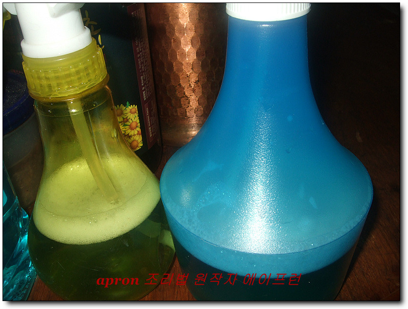 비율은 50%씩 섞고 소금은 소량 쓰고 스프레이에 담아서 칙칙 뿌리면서 씁니다