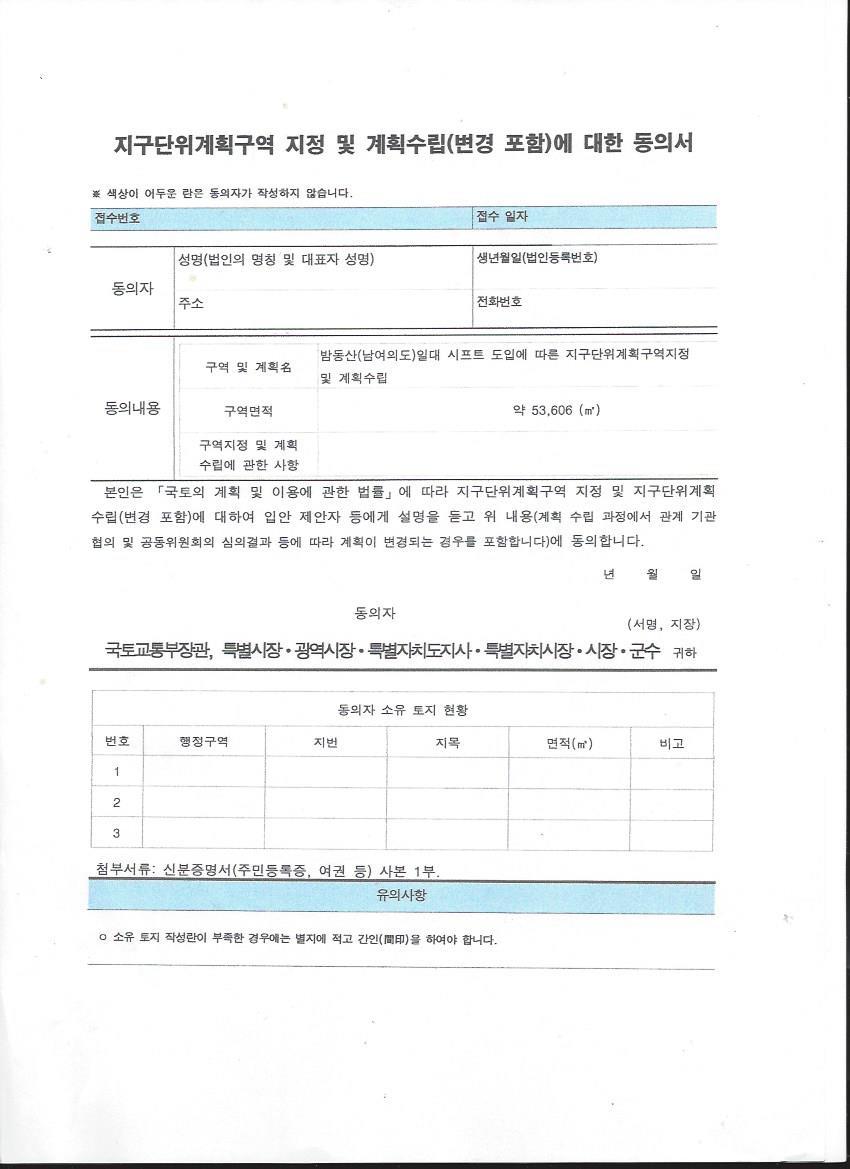 아래 내용은 "지구단위계획구역 ~" 으로 시작되는 동의서로서