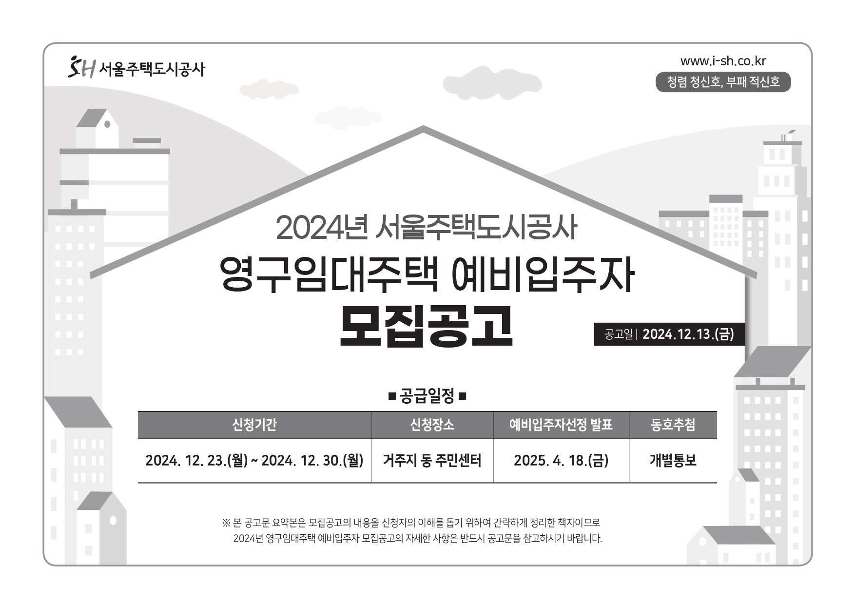 ○ 예비입주자 발표 : 2025. 4. 18.(금)