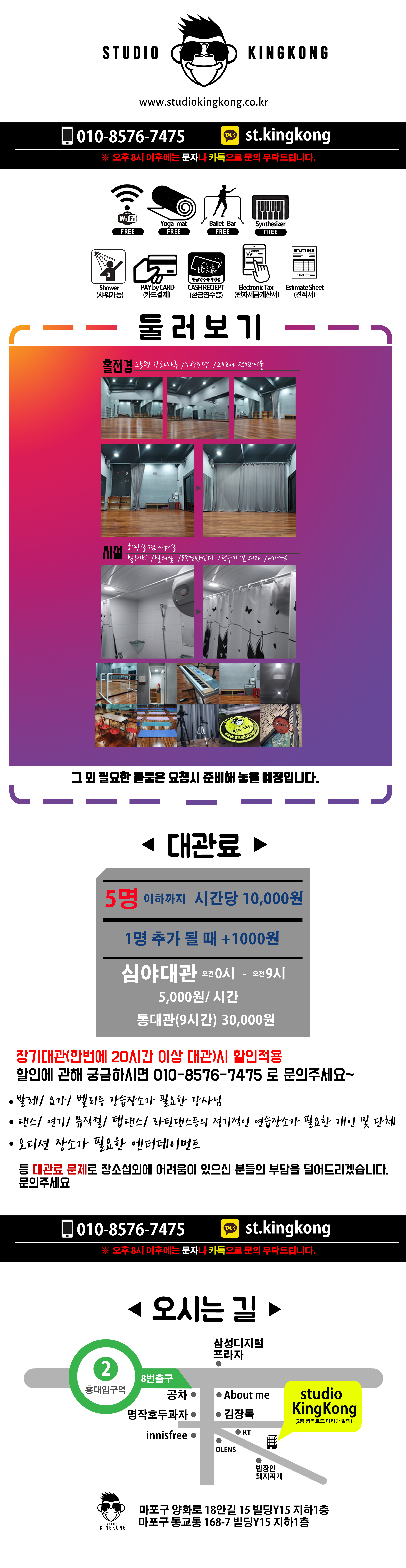 * 대관문의: 010-8576-7475/ 카카오톡id: st.kingkong