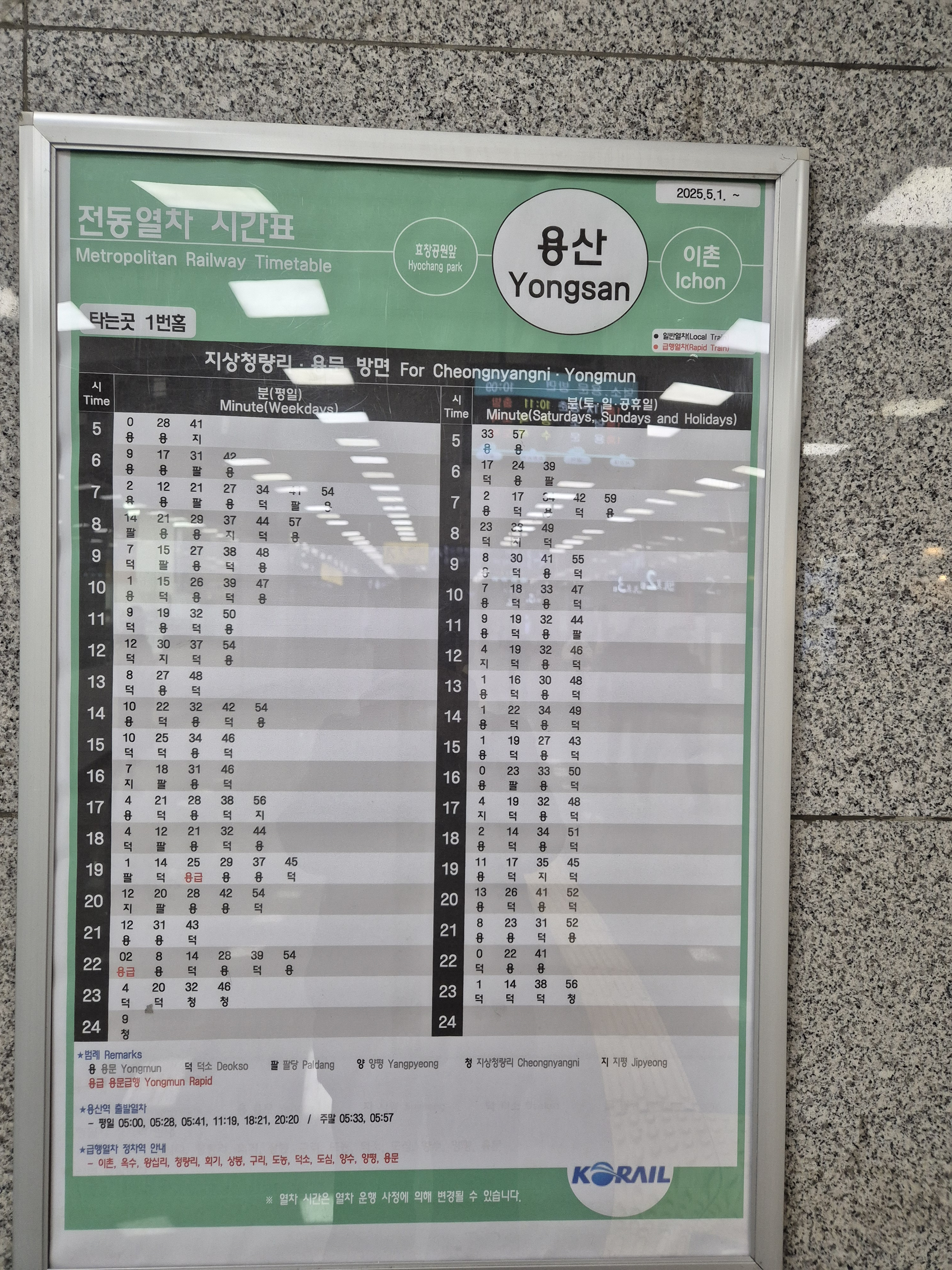 | 경의 중앙선 전철 시간표 / 용산역 - 이촌역 옥수역 왕십리역 상봉역 구리역 양평역 용문역 20251204 | |