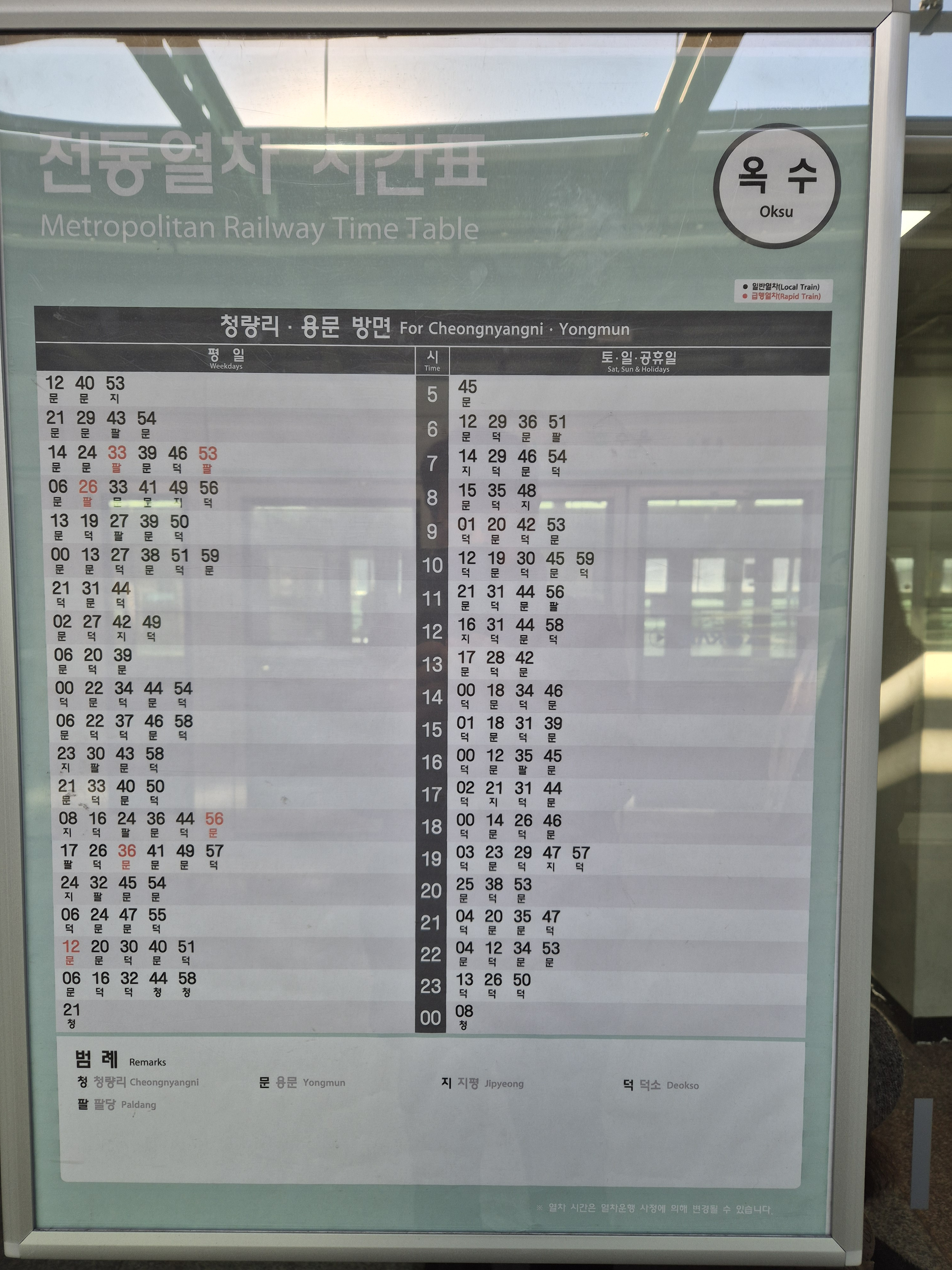 경의 중앙선 전철 시간표 / 옥수역-왕십리역-청량리역-상봉역-팔당역(예봉산)-원덕역(추읍산)-용문역(용문산) 20251204