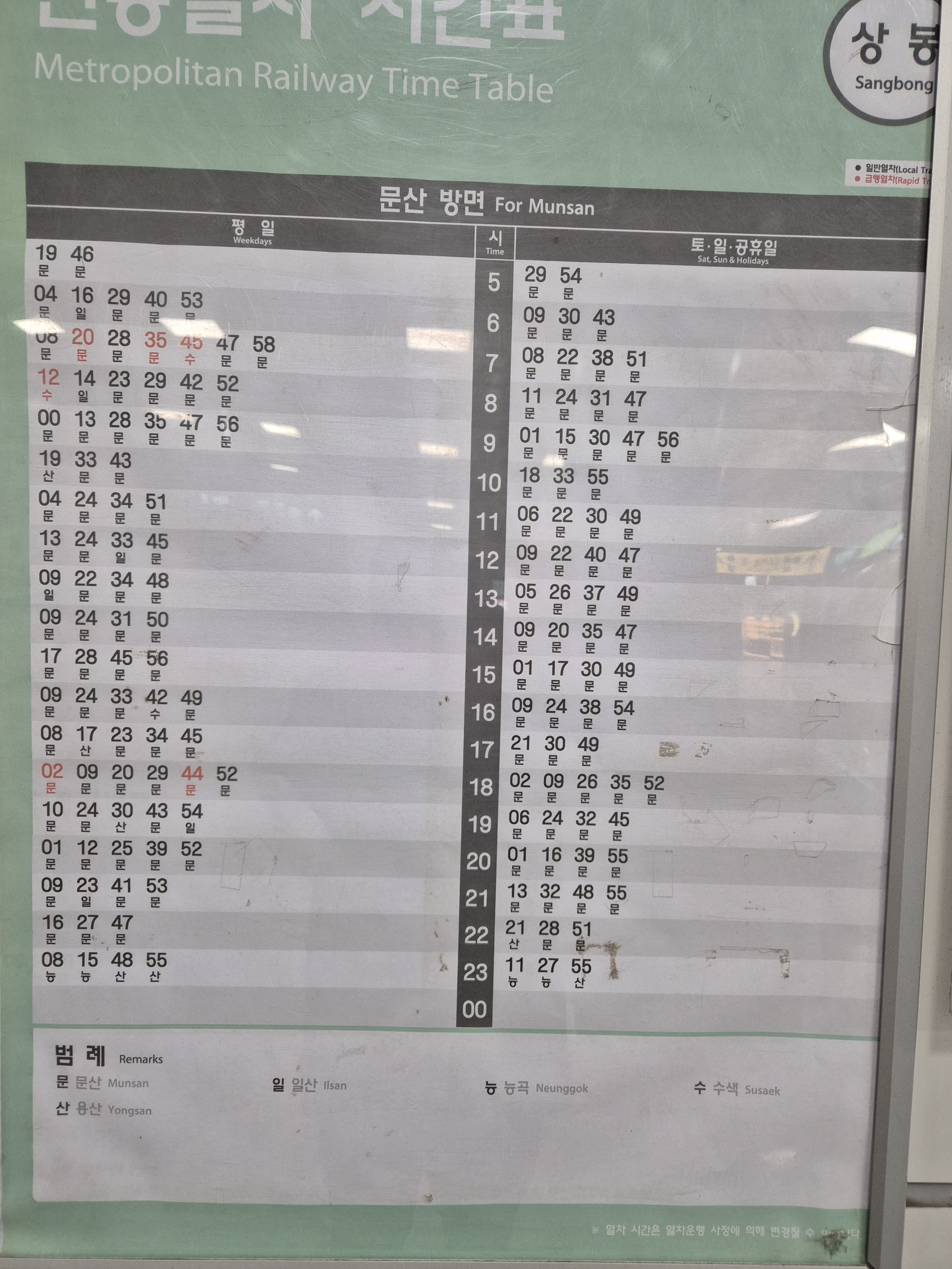 | 경의 중앙선 전철 시간표 / 상봉역 청량리역 용산역 공덕역 능곡역 일산역 문산역 202512016 | |