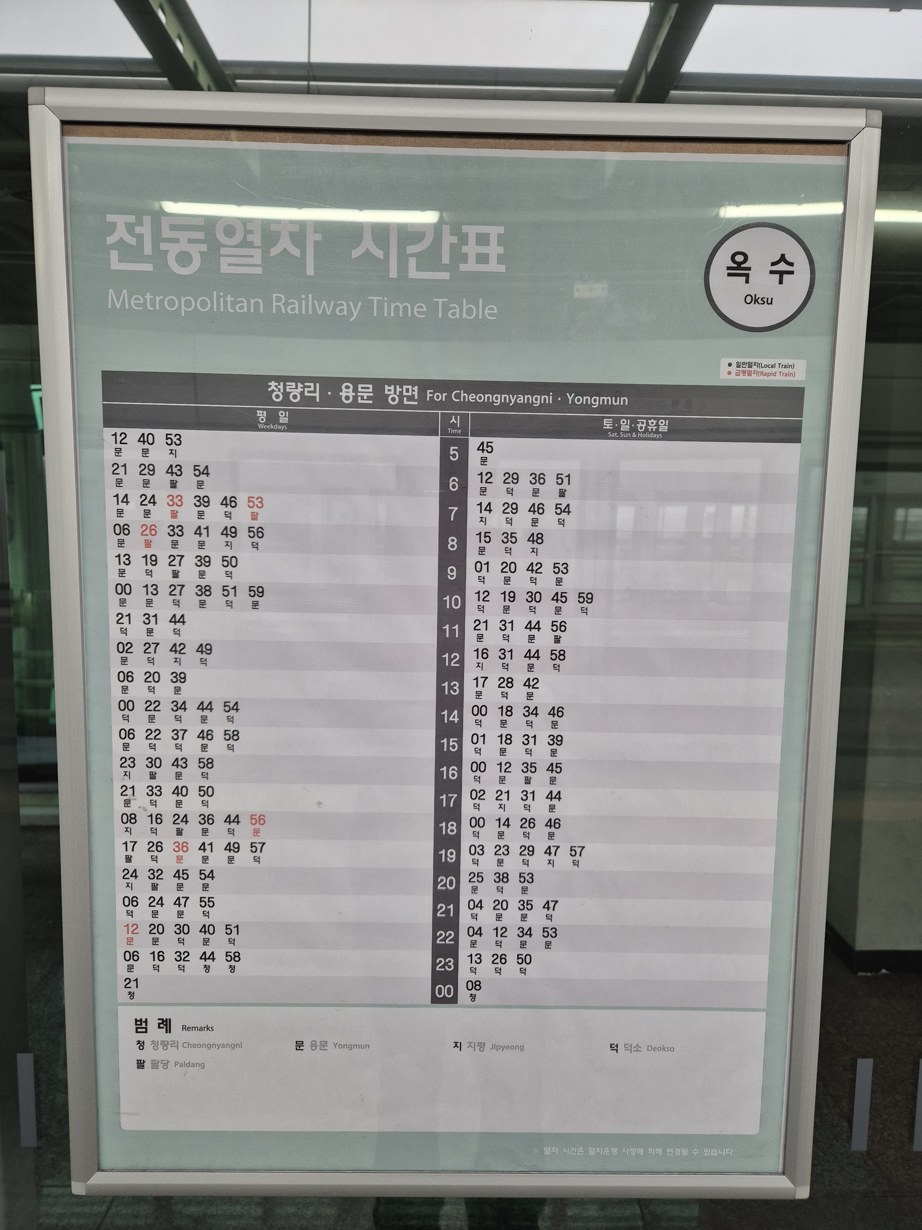 | 경의 중앙선 전철 시간표 / 옥수역 왕십리역 청량리역 상봉역 구리역 양평역 용문역 20251216 | |